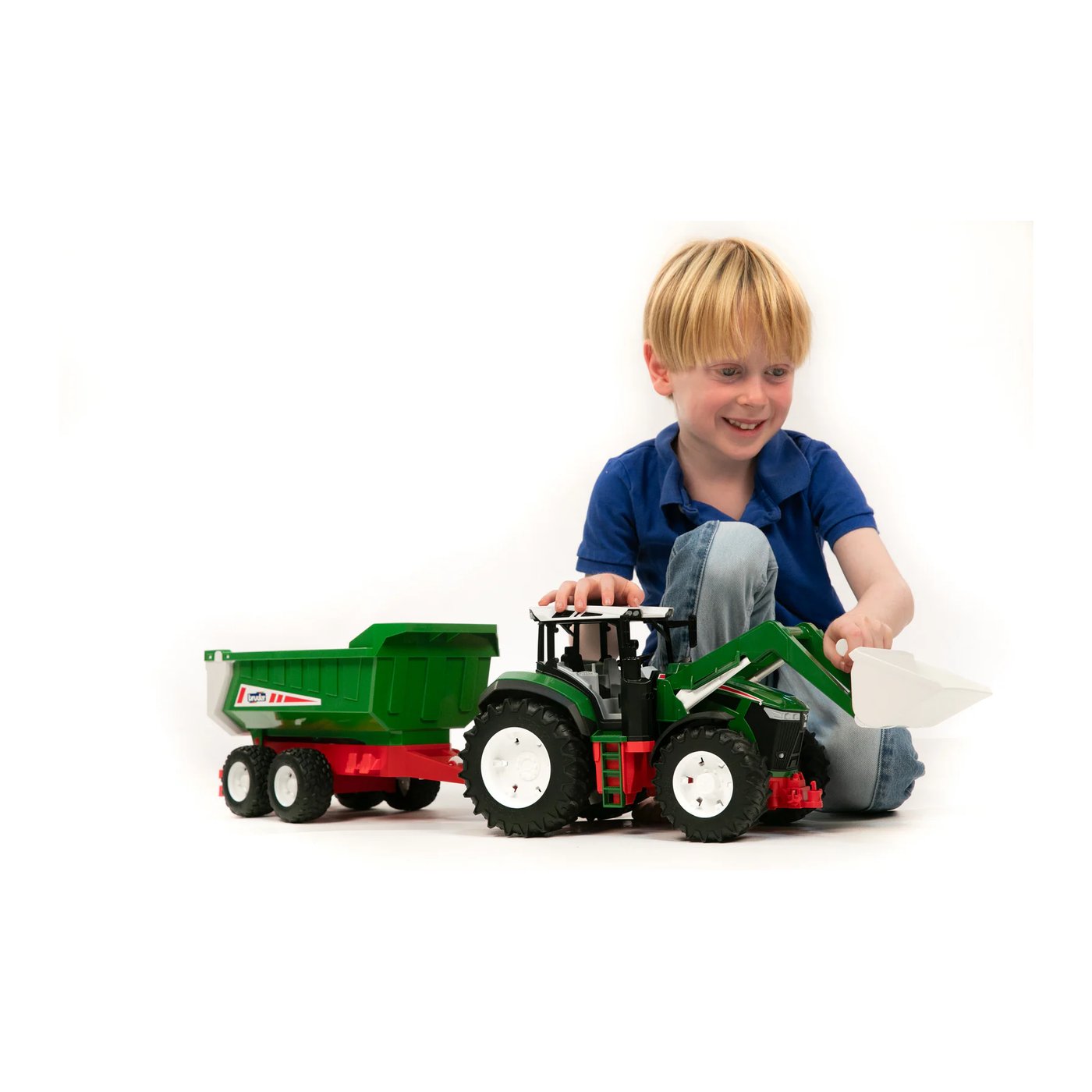 Unesite svijet beskrajnih mogućnosti s našim novim Traktorom s prednjim utovarivačem i prikolicom, najnovijim dodatkom BRUDER-ove ponude koji će zasigurno postati ključni element svakog poljoprivrednog tematskog svijeta. Dizajniran prema BRUDER-ovom motu “Baš kao pravi”, ovaj traktor donosi vrhunski doživljaj igre i kombinira inovativnost s autentičnošću, zadovoljavajući najviše standarde kvalitete i izvedbe.