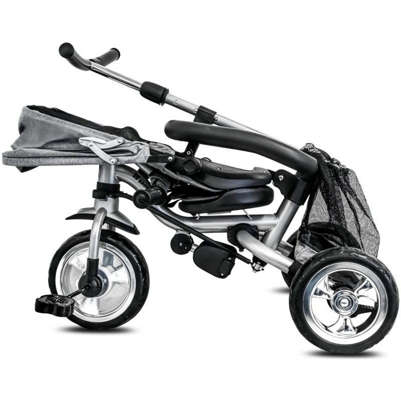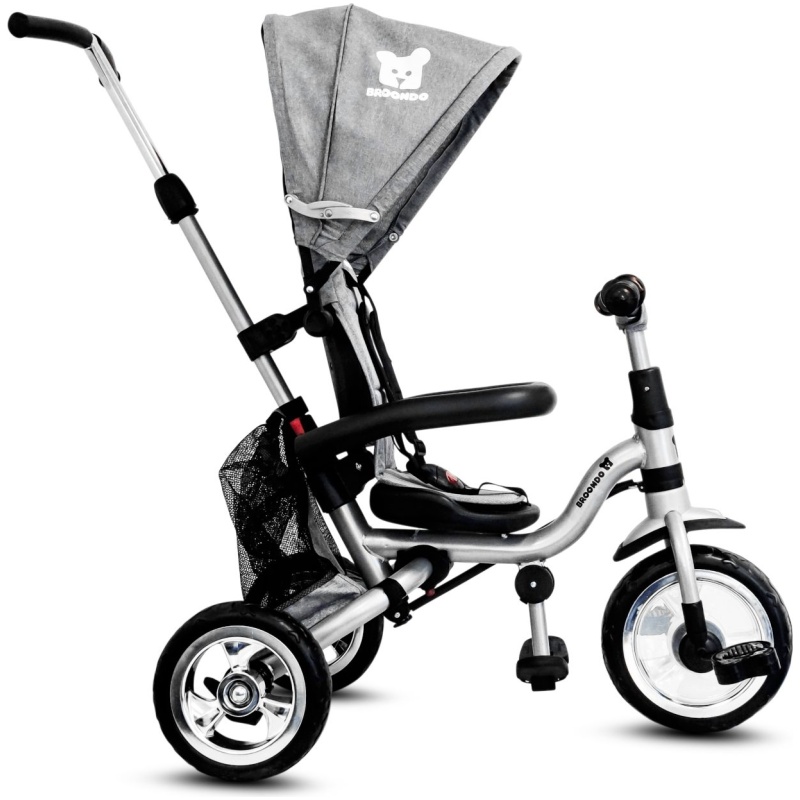 Visokokvalitetni tricikl Broondo za djecu. Izrađen od kvalitetnih, sigurnih i testiranih materijala. Roditelj može gurati tricikl pomoću ručke te odrediti smjer i brzinu kretanja. Dok roditelj upravlja triciklom dijete sjedi u košari s nogicama na naslonima. Ovaj višenamjenski tricikl je za dijete do 3 godine (25 kg).
