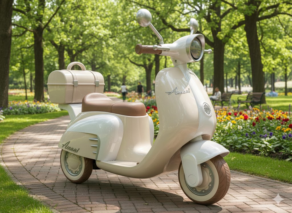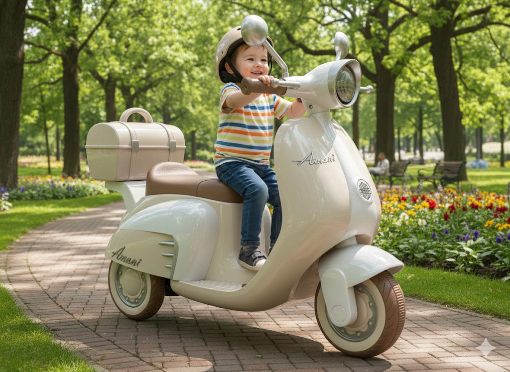 Vespa Bež Ml-801 kombinira izvanredan dizajn s naprednom tehnologijom kako bi svaka vožnja bila pravo iskustvo. Njena bež boja donosi dašak elegancije, a realistični zvukovi i svjetlosni efekti čine da se djeca osjećaju kao pravi vozači. Opremljena pouzdanom kočnicom i dugotrajnom baterijom, ova Vespa garantira sigurno i kontinuirano uživanje u vožnji. Njezina izdržljivost omogućuje bezbrižnu igru, dok atraktivan dizajn plijeni pažnju i budi dječju maštu.