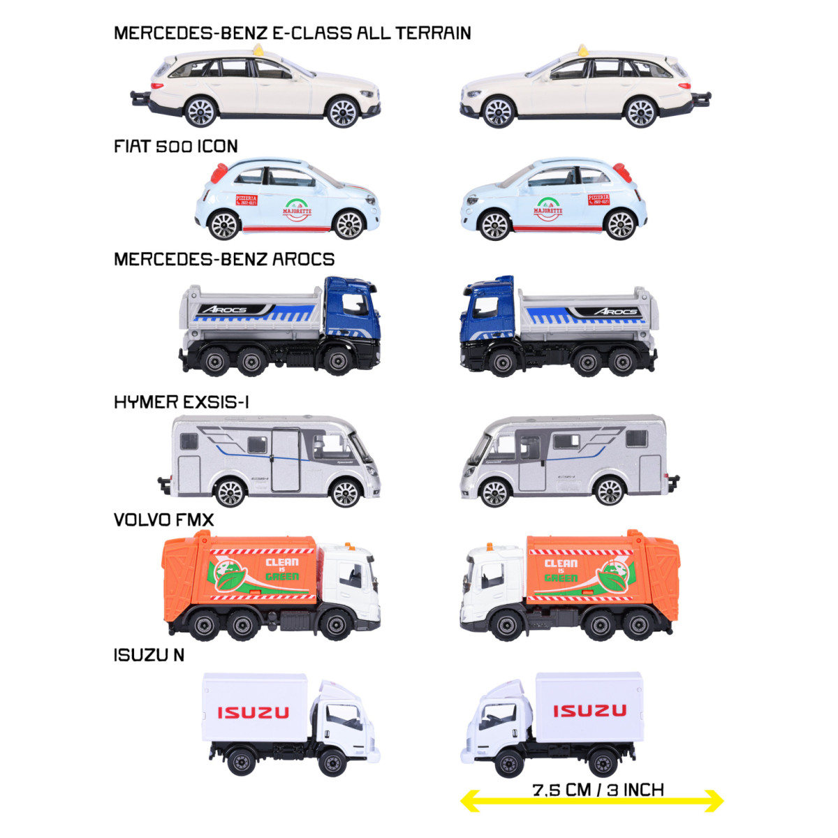 - Šest atraktivnih modela iz svakodnevnog života – Od automobila do kamiona i kampera; raznolikost koja oduševljava djecu i kolekcionare.