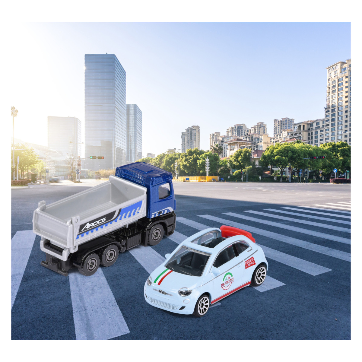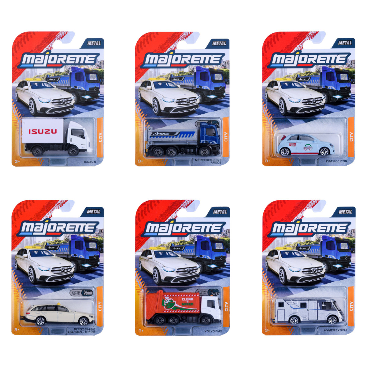 Zamislite uzbuđenje otvaranja blister pakiranja i pronalaženja jednog od šest poznatih modela – od elegantnog Mercedes-Benz E-Class All Terrain do moćnog Volvo FMX kamiona. Svakom vozilu priložena je i kolekcionarska kartica, što svaki primjerak čini posebnim. Poklonite djeci sate kreativne igre ili upotpunite svoju kolekciju nečim doista posebnim – jer Majorette City Premium nije samo igračka, to je mali komad svakodnevice u vašim rukama.