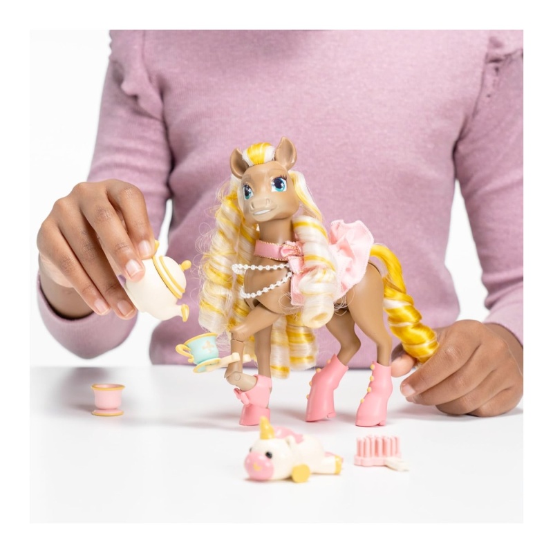 Savršen dodatak za svako djetinjstvo ispunjeno maštom, elegancijom i zabavom. Cherie, prekrasna zlatna kobilica, nije samo igračka, već prijateljica koja potiče iznimnu velikodušnost i kreativnu igru. S njezinim raskošnim zlatnim detaljima i pokretnim prednjim udovima, Cherie je spremna za svaku modnu avanturu koju vaša djevojčica može zamisliti.