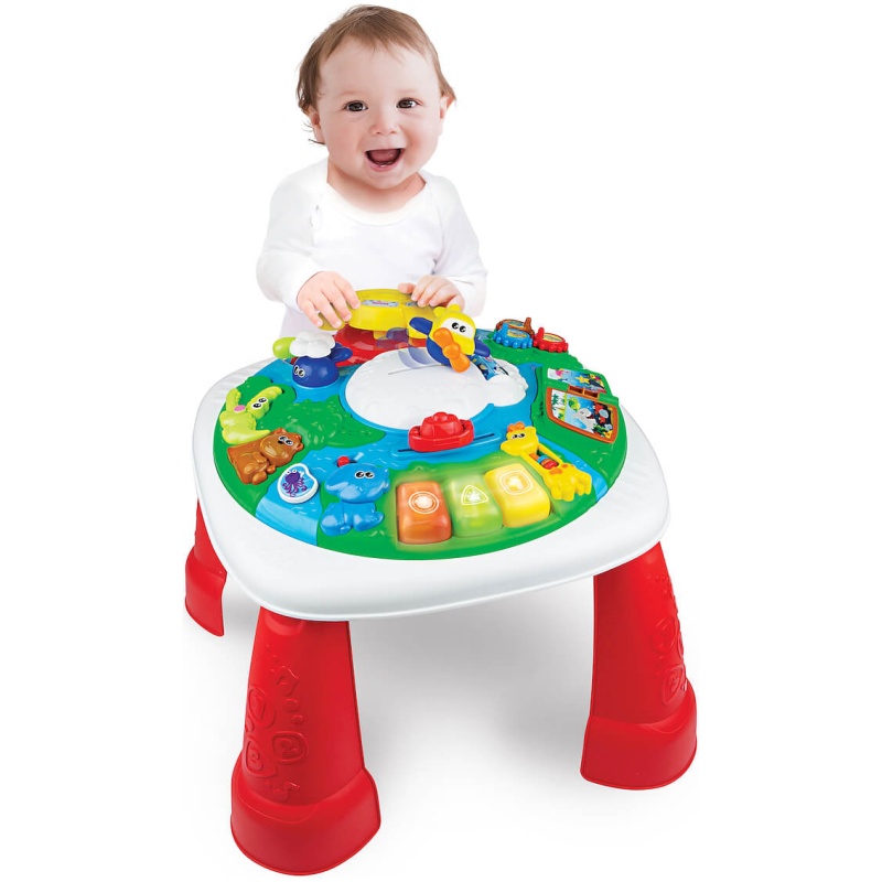 Ova edukativna ploča potiče vizualni i motorički razvoj te potiče dijete na aktivnost. Pokretni elementi pozitivno utječu na motoričku koordinaciju, kognitivne sposobnosti i razmišljanje o uzrocima i posljedicama. Tijekom igre, dijete uči – upoznaje nove oblike, boje i zvukove. Akcije pritiskanja, guranja i okretanja povećavaju preciznost pokreta ruku. Piskovi i svjetla stimuliraju sluh i vid djeteta.