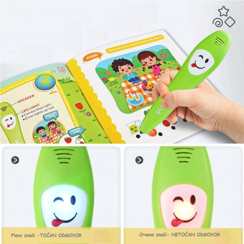 36 točaka učenja – olovka prepoznaje razne ilustracije/slike i aktivira odgovarajući zvuk ili izjavu kada se dodirne.