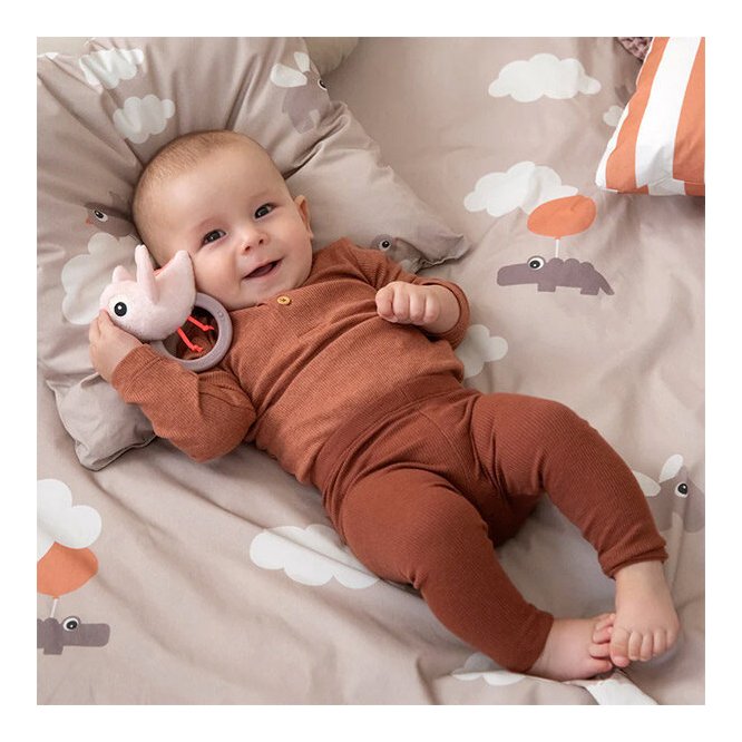 Napravljen od visokokvalitetnog poliestera te punjen recikliranim poliesterskim vlaknima, Birdee Powder osigurava sigurnost i dugotrajnost. Roditelji će cijeniti činjenicu da se zvečka lako održava, jer se može prati na 40°C, čuvajući pritom svoju mekoću i oblik. To znači da će vaša beba uvijek imati čistu i sigurnu igračku pri ruci.