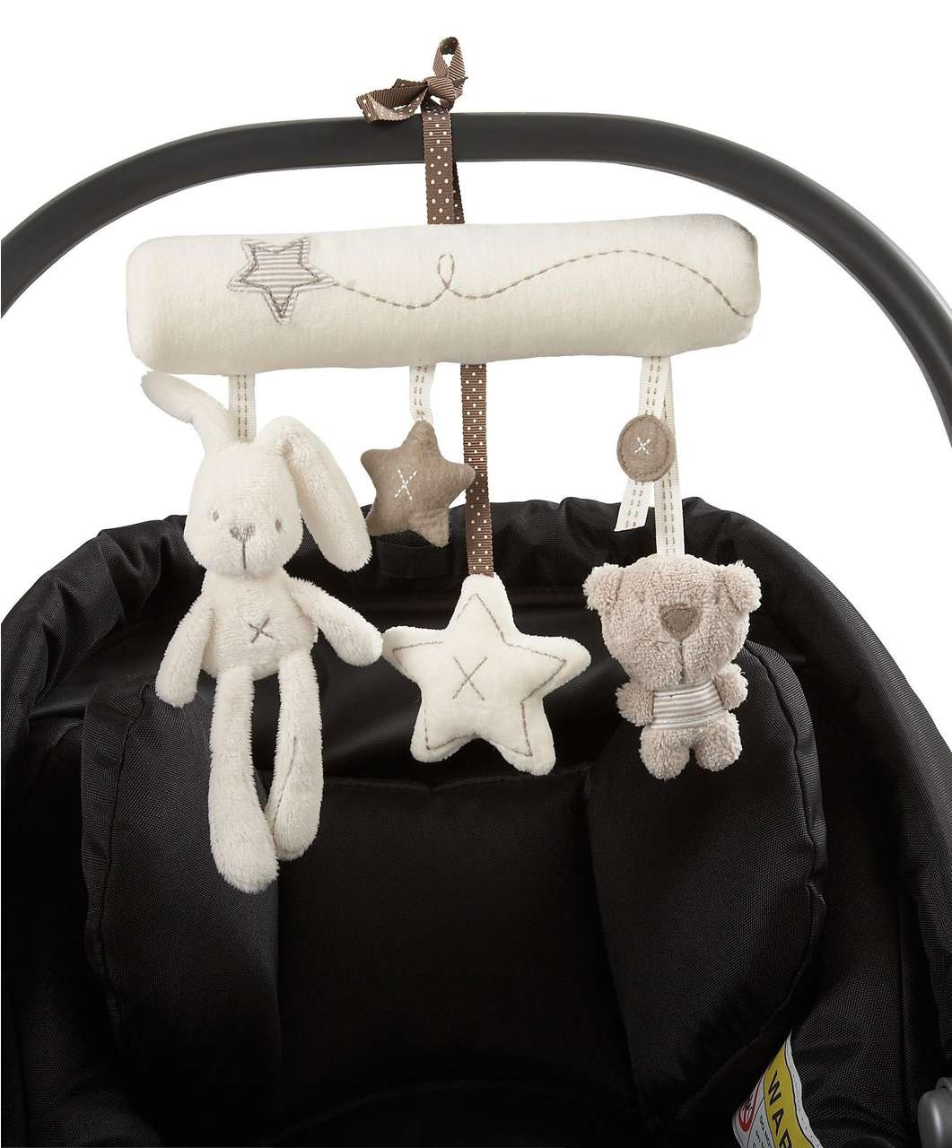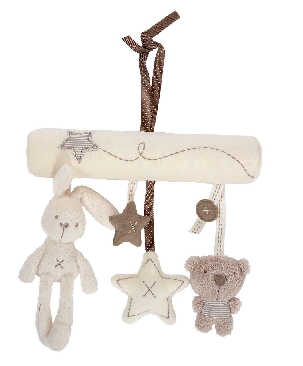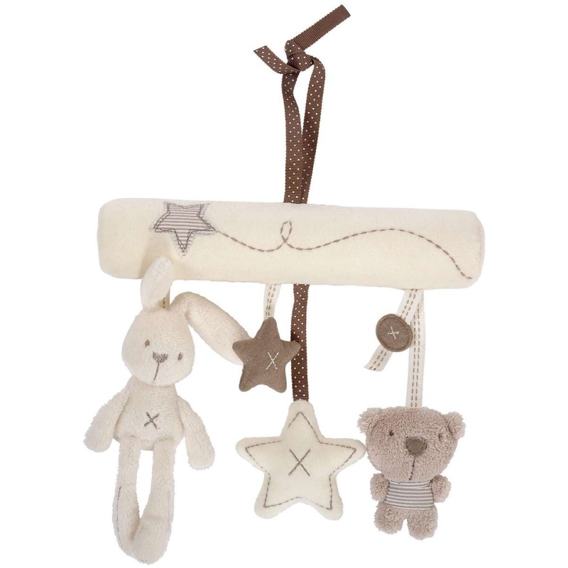 Plišana igračka lijepog izgleda i visoke kvalitete potjeće iz Mamas&Papas kolekcije. Mekana je i praktična. Može se koristiti samostalno ili se prikačiti na nosiljku, kolica ili krevetić. Potiče bebinu motoriku. Na igračci su integrirane četiri plišane manje igračkice koje pomicanjem daju zvukove kao zvečka. Tu su zeko, medo i dvije zvjezdice . Prikladna je i kao lijep poklon za svako novorođenče.