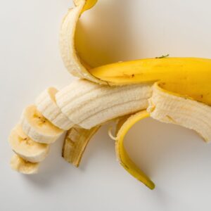Ogulite bananu i narežite je na kriške. To će djetetu olakšati da ih uhvati i stavi u usta. Poslužite odmah na pladnju, koristeći podbradnjak s džepićem, poput Nuvita Silikonskog podbradnjaka, kako biste uhvatili skliske komadiće.