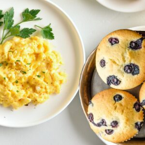 Jaja su odličan izvor proteina i zdravih masti, a muffini od borovnica dodaju drugu teksturu obroku.